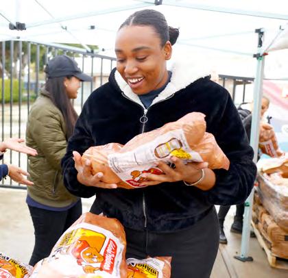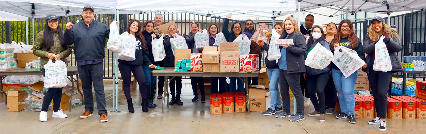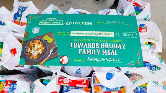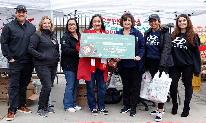 Hyundai and Northgate Gonzales Markets teamed up on December 2 for a big drive-through food giveaway to benefit families in Paramount. In the photo above, Vice Mayor Isabel Aguayo (in red coat) and Mayor Vilma Cuellar Stallings hold a gift check signifying the generosity of these two companies that have made the holidays brighter for so many in our community. See additional photos on page 7.