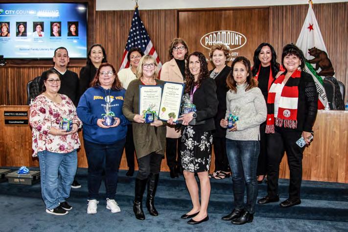 Paramount Unified School District Library Technicians joined the City Council and Andrea Crow to receive the City’s proclamation for National Family Literacy Month. The month promotes getting the whole family together to enjoy some reading. When you read to your children, you provide them with fundamental skills for success in school and life. When a parent reads with their kids, learning occurs, memories are created, and bonds are reinforced.