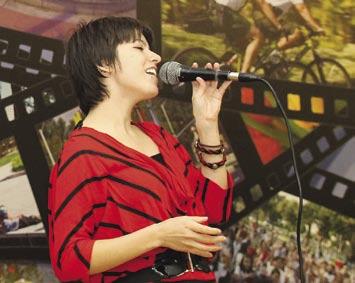 Tori Romero, granddaughter of Paramount Petroleum employee Bill Winters singing at holiday mixer.