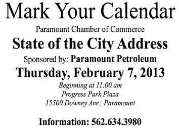 As the new year begins, I know that the teamwork and commitment to our community from all corners of Paramount will continue to make this a great place to live, work and play.