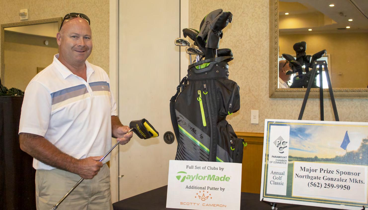 Brian Tanklage won the major raffle prize (sponsored by Northgate Gonzalez Markets): a full set of TaylorMade clubs with an added Scotty Cameron Putter.