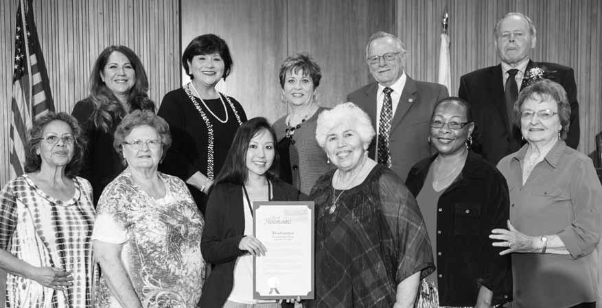 a pril was celebrated as Fair Housing Month throughout the u nited States and the City Council issued a proclamation supporting anti-discrimination laws in housing. a ccepting the proclamation was Elizabeth Castro from the Fair Housing Foundation, which serves the residents of Paramount with mediation and counseling services, and investigates discrimination in housing. From left: Councilmember Laurie Guillen, Vice Mayor Diane J. Martinez, Castro, Mayor Peggy Lemons, Councilmember tom Hansen, and Councilmember Daryl Hofmeyer.