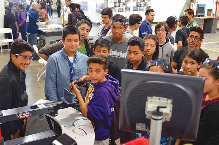 manufacturing is today. From Raw Material Traceability through Final Inspection, each work station gave students a first-hand look into 3D Printing, Precision Laser Measurement, Non-destructive Testing (NDT), Welding Simulators, Quality Inspection, Hands-free Computer Operations, Reverse Engineering, 400-ton Hydroforming, Computer-driven Plasma Laser Cutting/Trimming, Drop Hammer Metal Forming, Battery-powered Plant Power Operations, Robotics, Virtual Reality Visors, Part Identification Controls and 3D Modeling Software. Guests also learned about Outstanding Women in Manufacturing at a STEP Ahead Program exhibit, a yearly national recognition of 150 women and their vital roles in business, sponsored by the National Association of Manufacturers.
