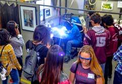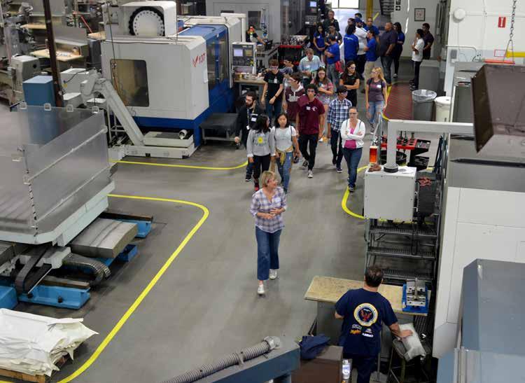 modeling and printing, computer numerical control (CNC) milling, water-jet cutting, various types of welding, quality engineering and final inspection. Students even got to operate a 10-ton drop hammer!