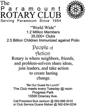 If you would like to add your service club to those shown here, please contact the Paramount Chamber of Commerce at 562-634-3980.
