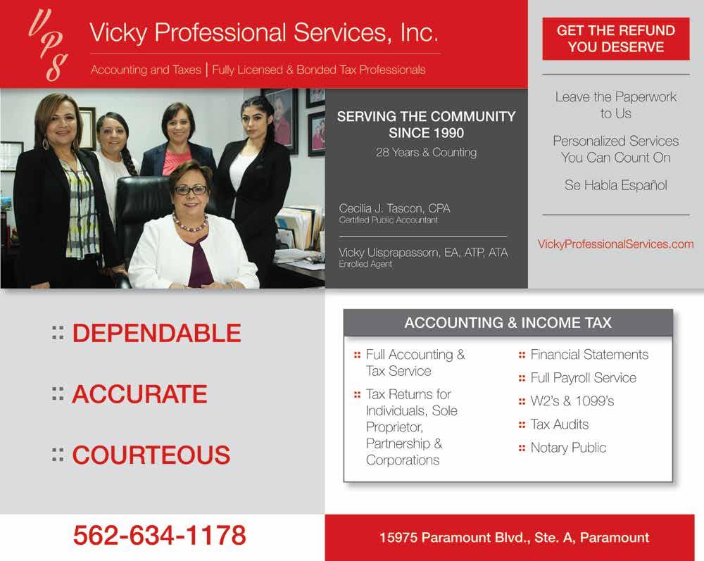 Vicky Professional Services (562-634-1178): 20% off bookkeeping and accounting service.