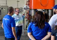 Weber Metals engineers demonstrated the black light inspection process of a part as it brightly glowed with green penetrant oil. Using mini-presses and Play-Doh, students were able to simulate how a structural component of an airplane is formed within a closed-die press. Students toured the new 60,000-ton press facility, which houses the largest privately invested forging press in the world (see the related story on page 8).