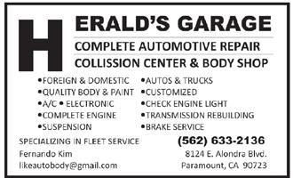 Herald’s Garage (562-633-2136): 15% discount on labor and free engine light reset.