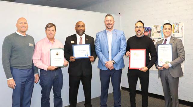 October was proclaimed as National Physical Therapy Month by the City Council at its October 4 meeting. This highlights the work done by physical therapists to inspire changes that improve and save lives. California Aquatic Therapy & Wellness Center, Inc., better known as Pools of Hope, was highlighted. They serve many members of the Paramount community with their indoor warmwater pools for rehabilitation and wellness work. Accepting the proclamation was Carlos Urbina, Board President of Pools of Hope and also a physical therapist. From left: Vice Mayor Isabel Aguayo, Councilmember Annette C. Delgadillo, Urbina, Mayor Cuellar Stallings, Councilmember Brenda Olmos, and Councilmember Peggy Lemons.
