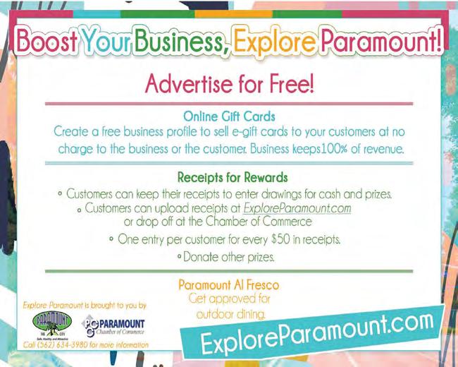 • Customers can upload receipts to ExploreParamount.com or drop them off at the Chamber of Commerce office (15357 Paramount Boulevard).