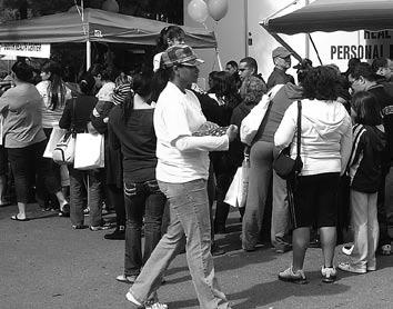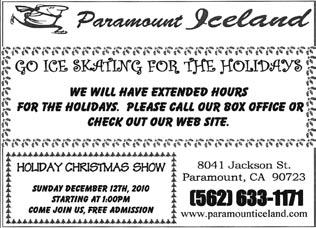 before the meal. Members of the Paramount Rotary Club, City employees and students from Paramount High School’s Corsairs service club served up the food in clockwork fashion. After dessert, Bill Pellegrino of the Rotary Club led the group in a spirited sing-along.