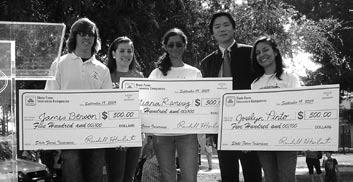 State Farm Galli Agency presents checks for $500 to outstanding students from Paramount High at the annual Safe & Smart Fair. Pictured from left: James Benson, Tatiana Ramirez, State Farm Consultant Matthew Li and Joselyn Pinto.