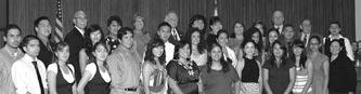 The Council and Board introduced Paramount High School’s Class of 2009 Co-Valedictorians Gabriela Robles and Jessica Hernandez (who was unable to attend) and Salutatorian Victor Salcedo. From left: Jesse Cheng (representing Congresswoman Linda Sanchez), PUSD Superintendent Dr. David Verdugo, Boardmember Vivian Hansen, Boardmember Linda Garcia, Vice Mayor Tom Hansen, Salcedo, Mayor Diane J. Martinez, Board Vice President Alicia Anderson, Board President Sonya Cuellar, Robles, Councilmember Peggy Lemons, Councilmember Daryl Hofmeyer and Councilmember Gene Daniels and Maritza Romero (also representing Congresswoman Sanchez).