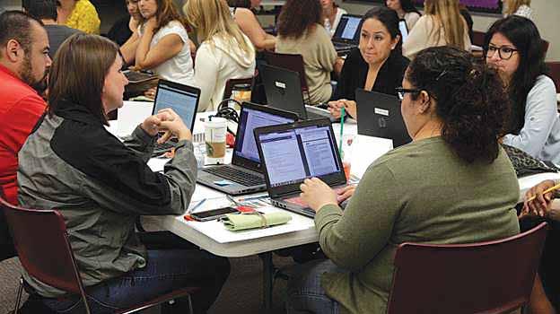 “El aprendizaje es dirigido a los estudiantes, en lugar de guiar a los maestros, dijo Nelda McCone Praytor, maestra de ciencia de la Escuela Intermedia Zamboni.”