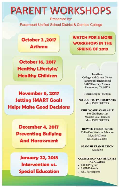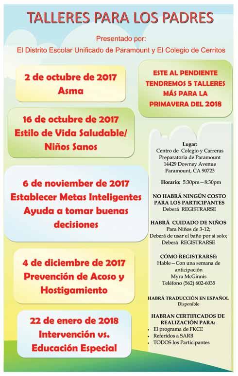 cionados con la asistencia estudiantil, El Distrito Escolar Unificado de Paramount ha contratado a personal para apoyar a las escuelas con asistencia y con los estudiantes crónicamente ausentes. Al tomar un enfoque proactivo, nuestro Distrito provee a los estudiantes más oportunidades para asistir a la escuela regularmente y así tener éxito.