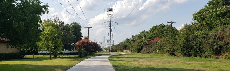 TheCity’snewHike&Biketrail,located on the north-south Oncor easement, openedonJuly24,2021.The1.22-mile paved trail runs from Glenview Dr. to SH121 frontage road. The trail has a width of 12 feet to allow pedestrians andbicyclistsaliketocomfortablyutilize thespace.