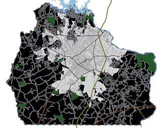 Areas within the floodplain or flood-prone areas are prohibited from development; likewise areas that are conserved through easements or other means are also protected from development. Blackjack soil is difficult to develop on due to rockiness and poor drainage. The map below shows these areas that limit development potential.