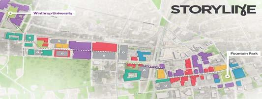 The Storyline is a proposed linear park located in the heart of downtown, designed to connect Fountain Park with Winthrop University. This vibrant park will offer a seamless experience for strolling, dining, shopping, and exploring the rich history of Rock Hill. Currently in the design phase, the concept is intended to be an immersive path of exploration where community, culture, and commerce converge to celebrate Rock Hill as a community.