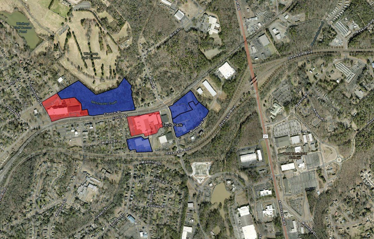 Locations near Riverwalk, Winthrop University, Tech Park and East White Street offer opportunities to serve the growing Rock Hill market with housing, commercial and industrial uses.