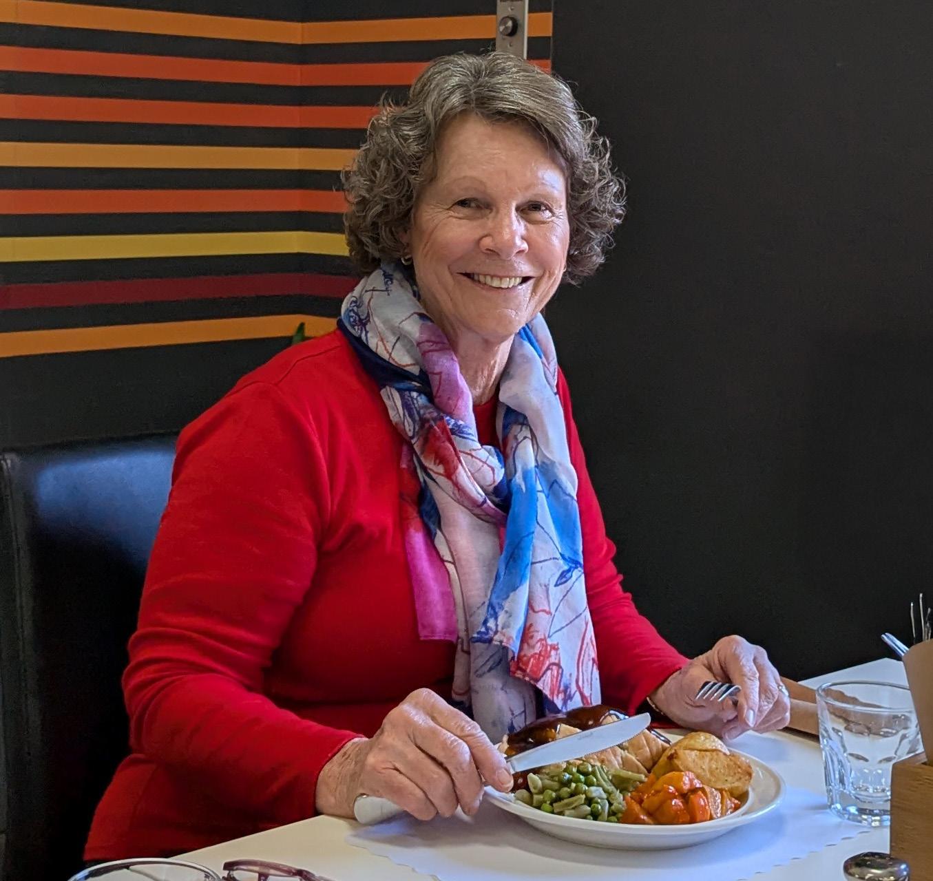 After caring for her mum for six years, Ros retired in 2019 and now ‘practically lives’ at the Jack Young Centre (JYC). She leads the knitting group, attends Move and Groove and Strength for Life sessions (adapted to her post-injury needs), walking groups, and Meet and Greet events.