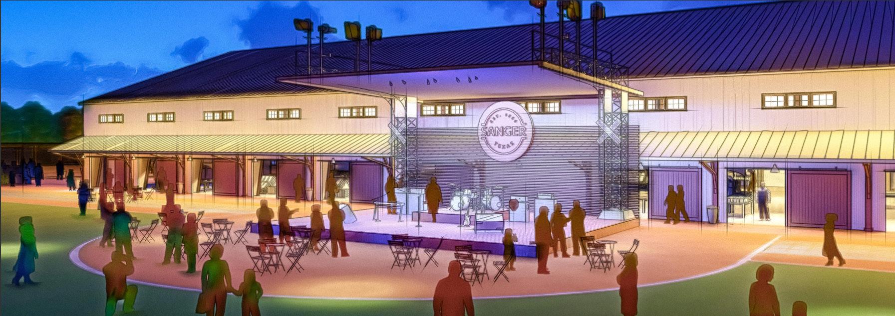 The goal for Sanger Downtown Park is to create an extension of the current downtown that would be flexible for both large events and daily use. Working from the Sanger 2040 Comprehensive Plan and the location of the site, the long-term vision for the project is to be a catalyst for future downtown development.