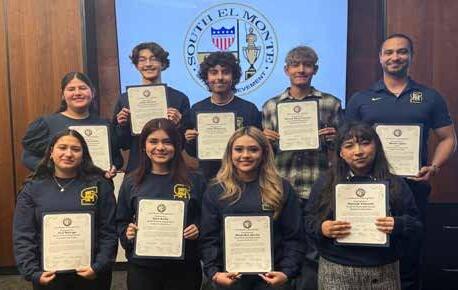 Certificates of Recognition presented to the South El Monte High School Academic Decathlon team and advisors.