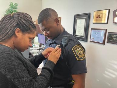 On February 22, 2024, Officer Daniel Nesbitt was promoted to the rank of Sergeant. Sergeant Nesbitt was hired by the Suffolk Police Department on September 16, 2013. During his tenure of service, Officer Nesbitt has worked primarily on B1 (downtown evening shift). He is a member of the Drone Team and a former Field Training Officer. Officer Nesbitt was named Field Training Officer of the Year in 2021. Let’s all take a moment to congratulate Sergeant Nesbitt on this milestone in his career. Sergeant Nesbitt is currently assigned to C2 (midnights/northern Suffolk)