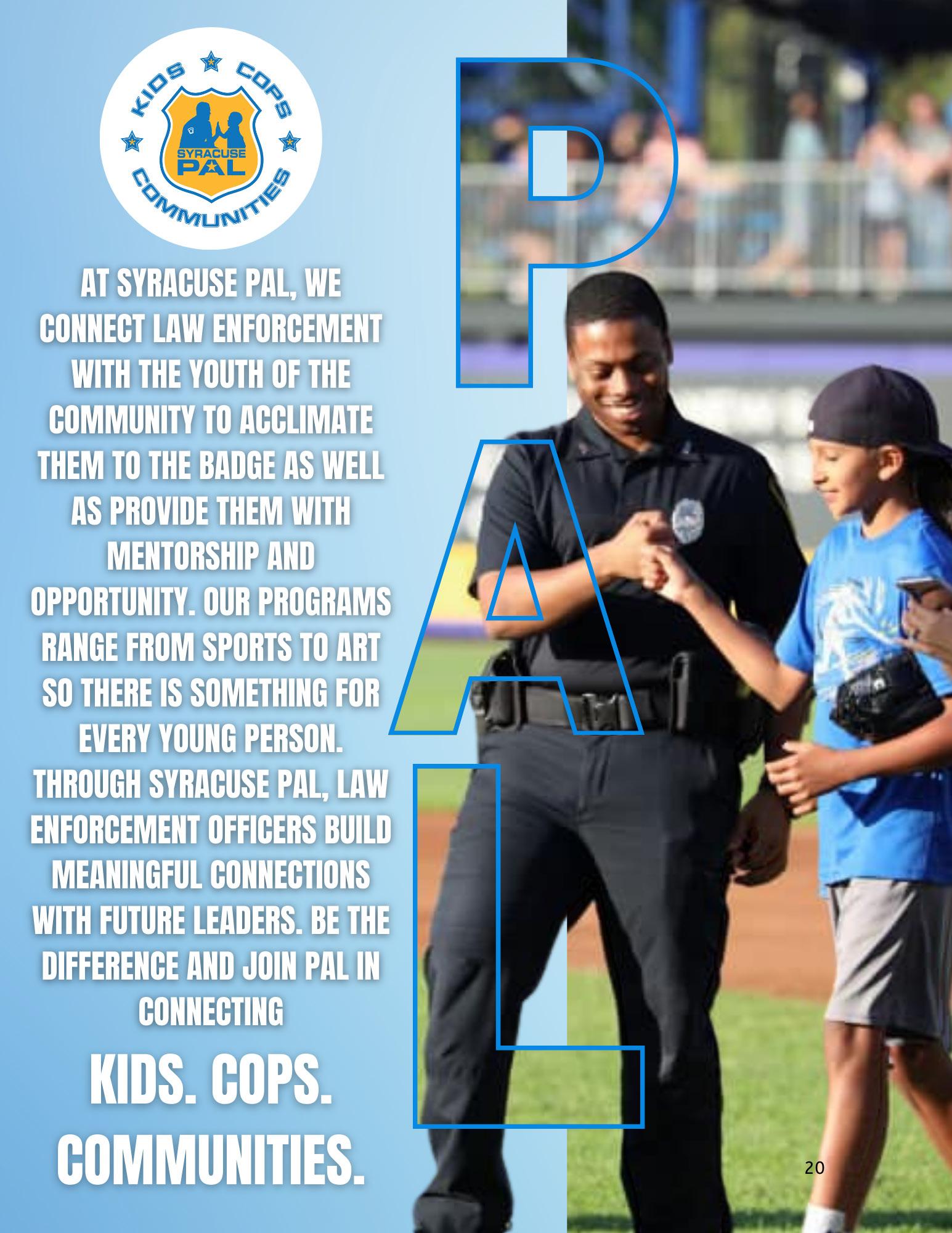 • Follow us on social media to stay in the loop of all things Syracuse PAL @syrpal44.