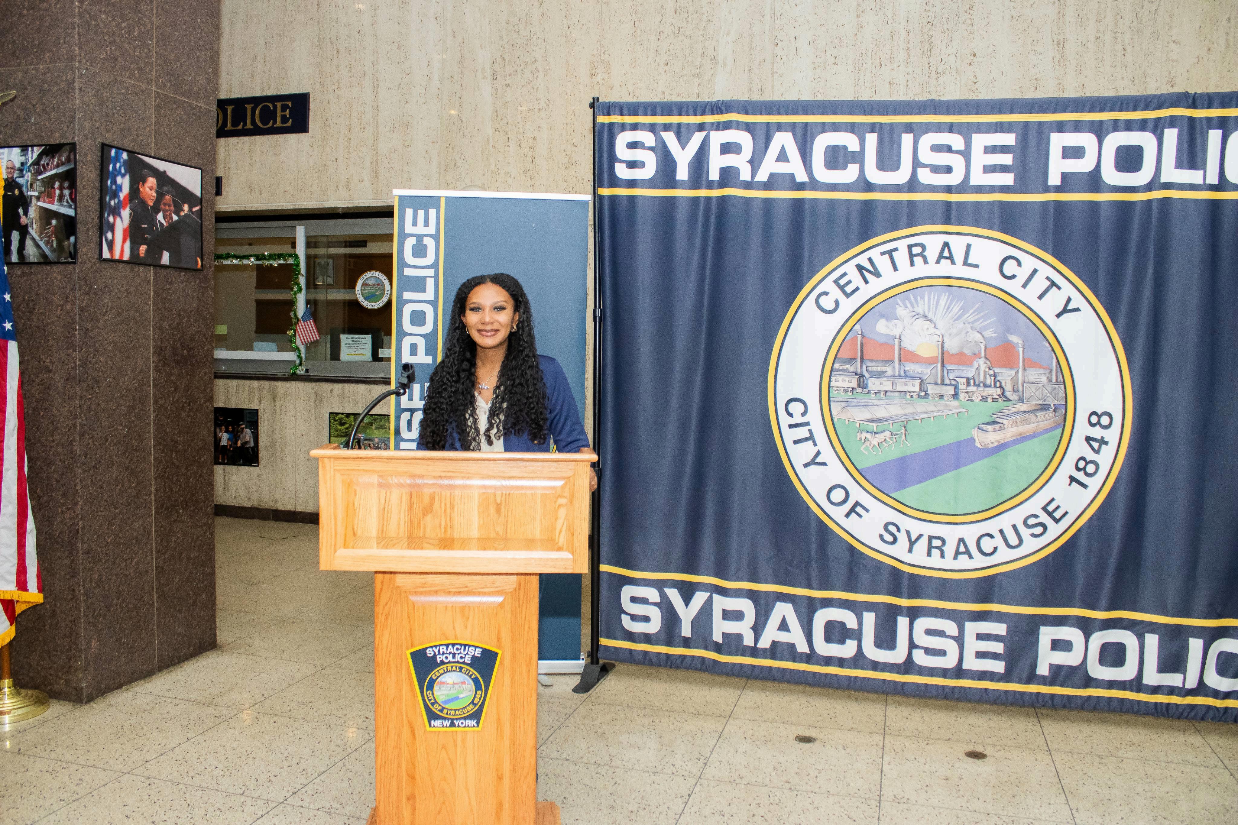 Nerissa Godbolt has proudly served as a Community Service Officer for nine years, celebrating her anniversary this June. She was encoraged by two officers to apply and found her passion in helping the Syracuse community. Outside of work, she enjoys camping, hiking, cooking, and spending quality time with family and friends. One of the most rewarding parts of volunteering with Syracuse PAL has been meeting young people and later encountering them around the community. It's important students see she not only works here but lives here too in their community. Nerissa believes in the importance of forging your own path. She reminds others that although life is hard, and making the right decisions can be even harder, it is possible to make those tough choices and build a successful, fulfilling life.