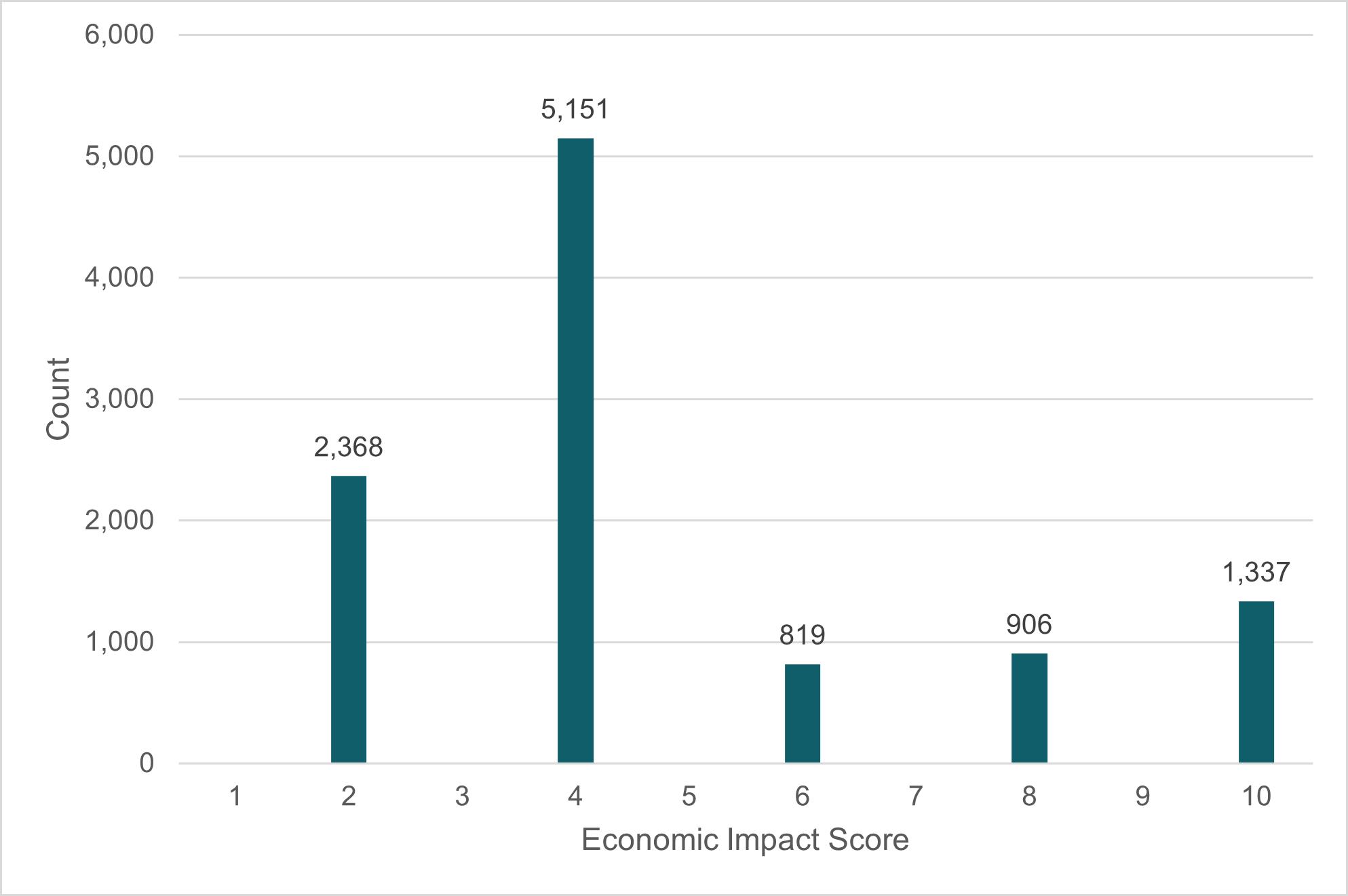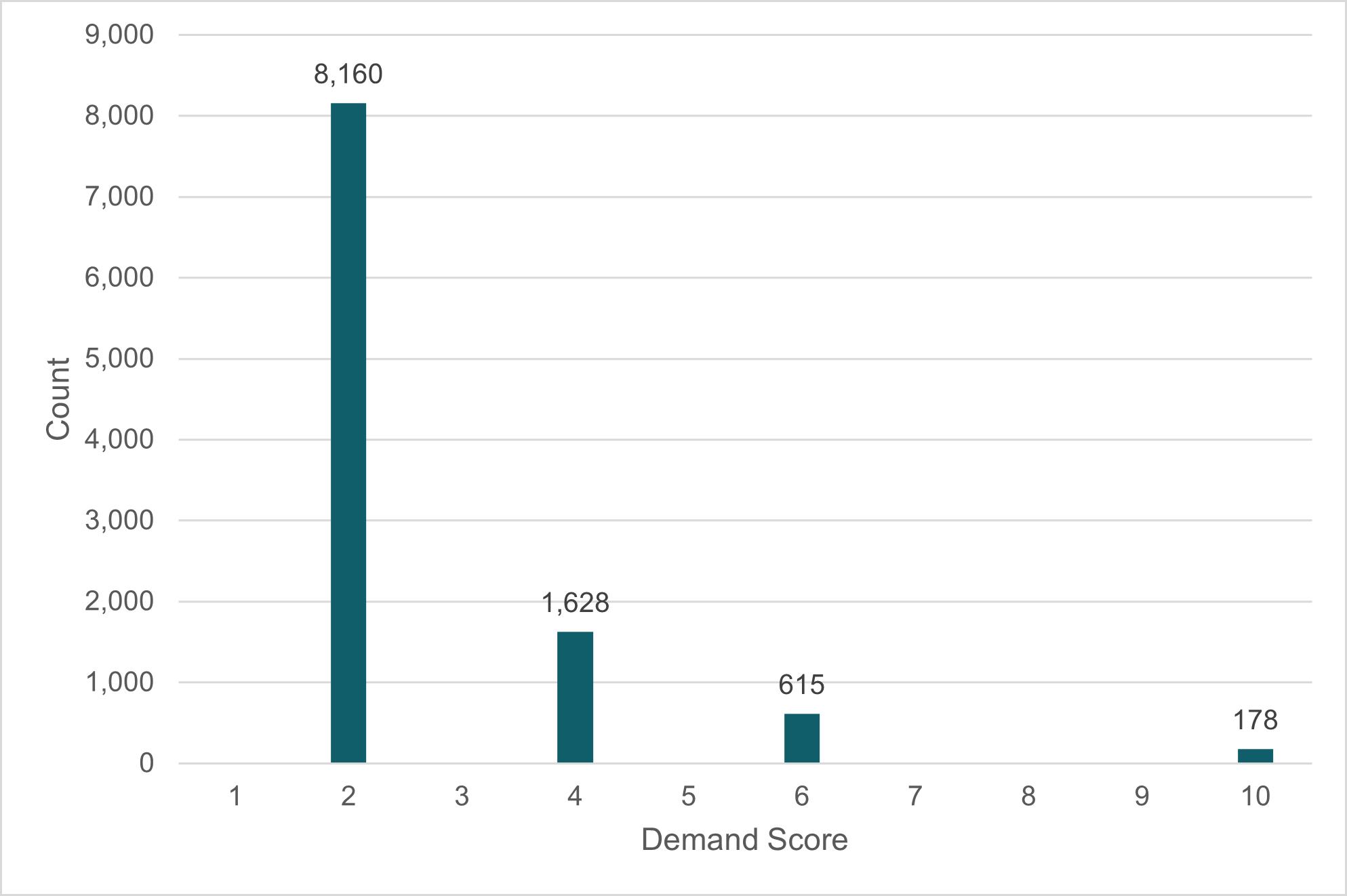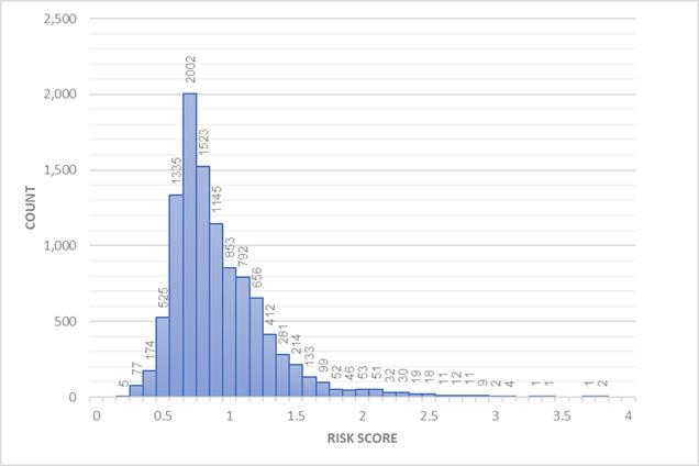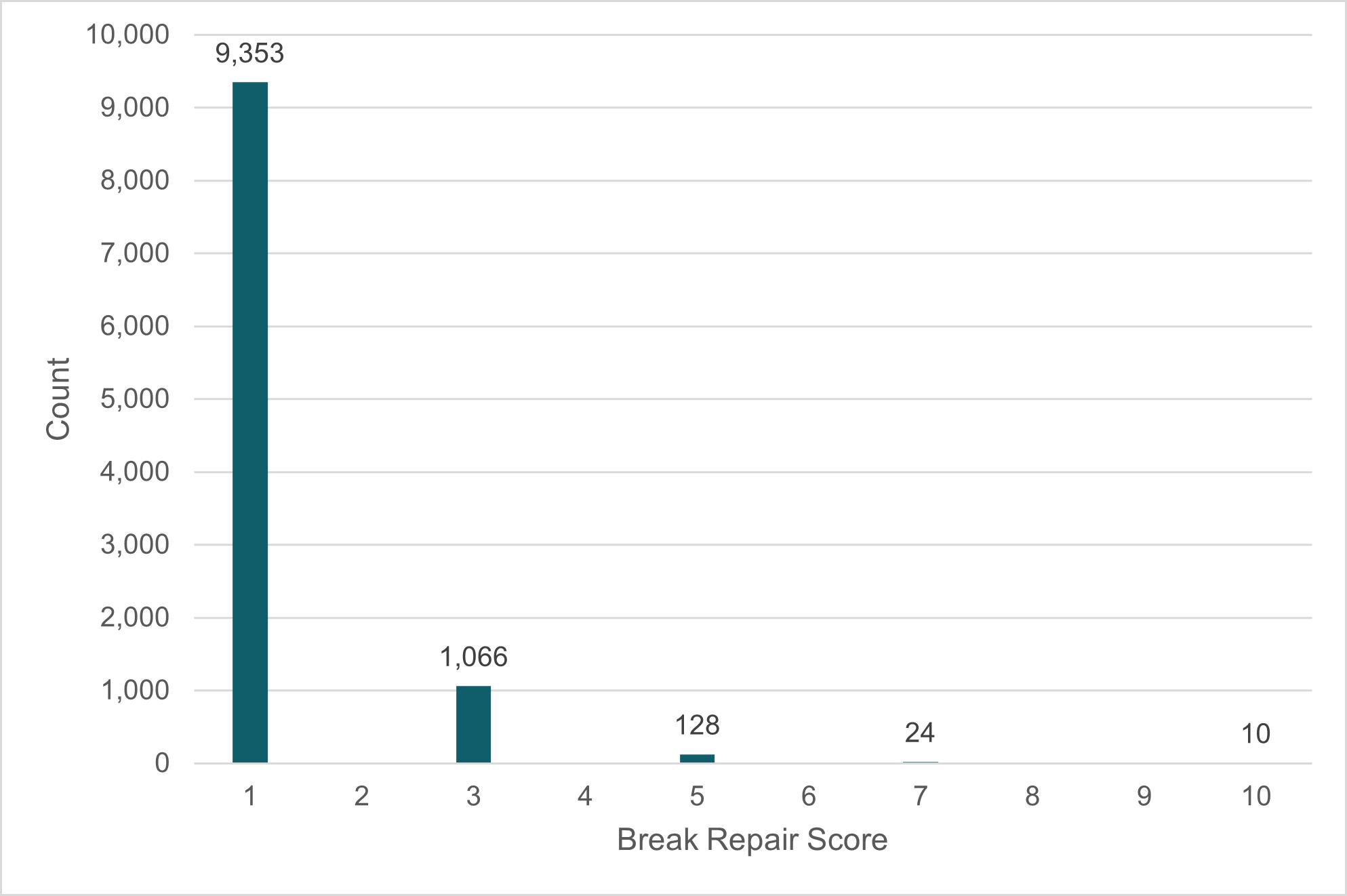 The Tyler system risk analysis identified 802 high-risk individual pipe segments (segments with an overall risk score greater than 1.4), equating to 64 linear miles, or approximately 10% of the system. These high-risk assets represent the pipes most likely to fail, as identified by the system condition estimate, as well as the most severe consequences should these pipes