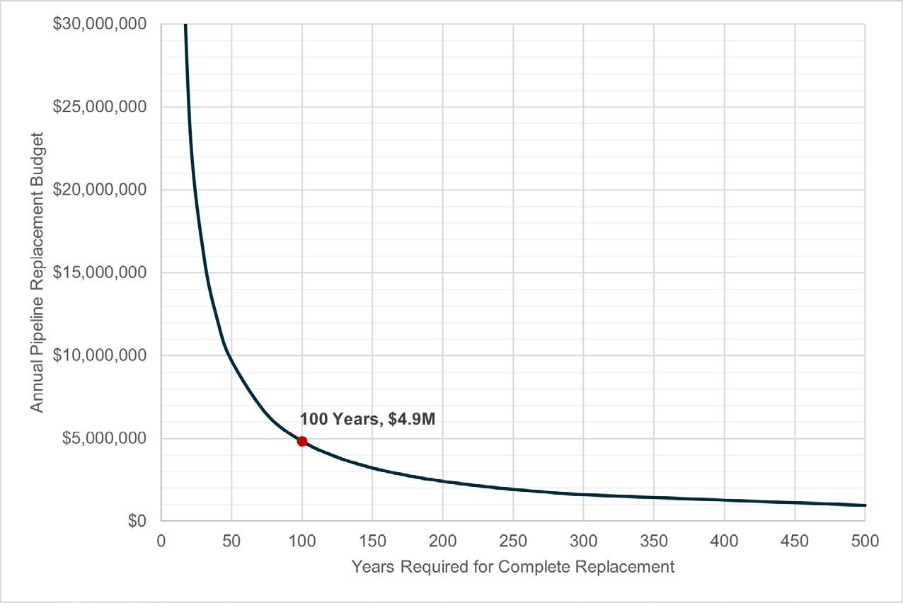is required. The cost to replace all pipes that have reached the end of their anticipated service life by the current year is approximately $257 million.