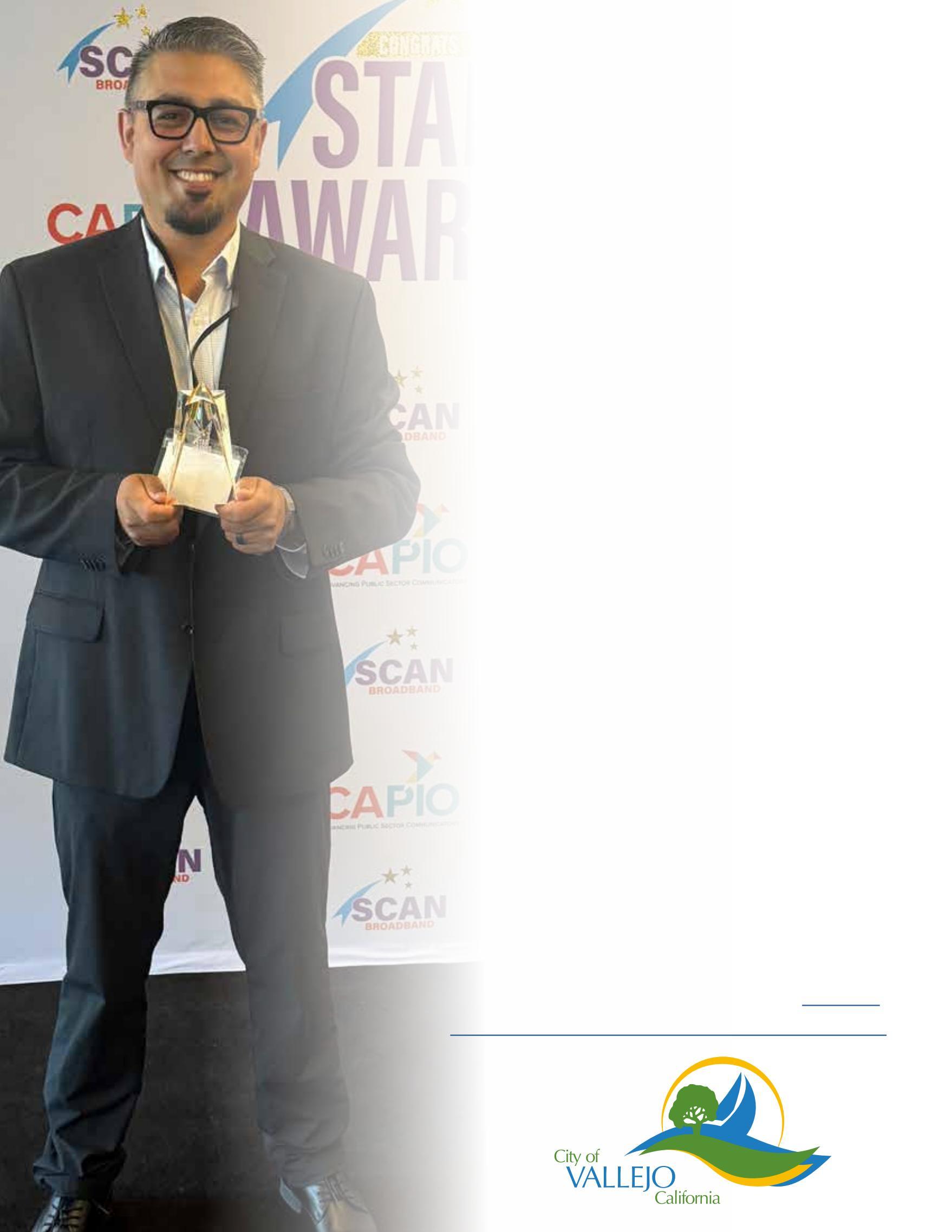 El2deoctubre,laCiudadobtuvoelprimerlugarenlospremios anualesSTARdelaAsociacióndeFuncionariosdeInformación PúblicadeCalifornia(CAPIO)porunvideoquecubrelacapacitación multiinstitucionaldelDepartamentodeBomberosdeVallejo,realizadaa principiosdeesteaño.Puedeleermássobreelvideoenlassiguientes páginas.