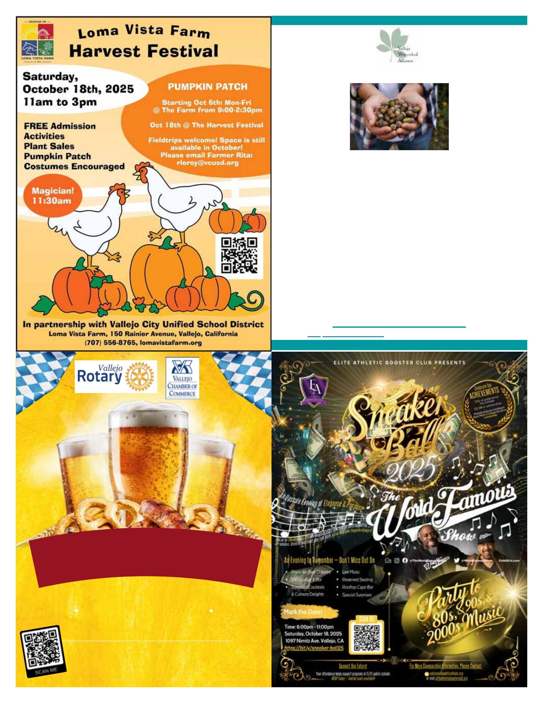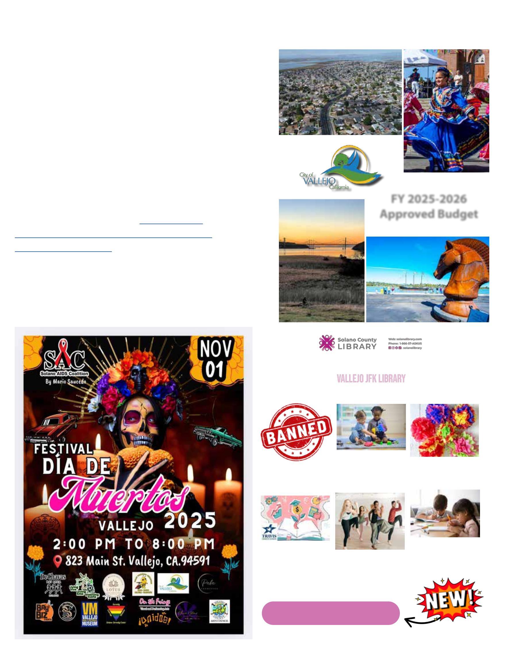 Porúltimo,nosepierdanmañanaelPaseoArtísticoporelCentro deVallejo,queincluiráunacelebraciónespecialdelosPueblos Indígenas.Yelsábado,laNAACPorganizaráunafiestacomunitariaen lacalle;encontraránmásdetallesenlaspáginassiguientes.