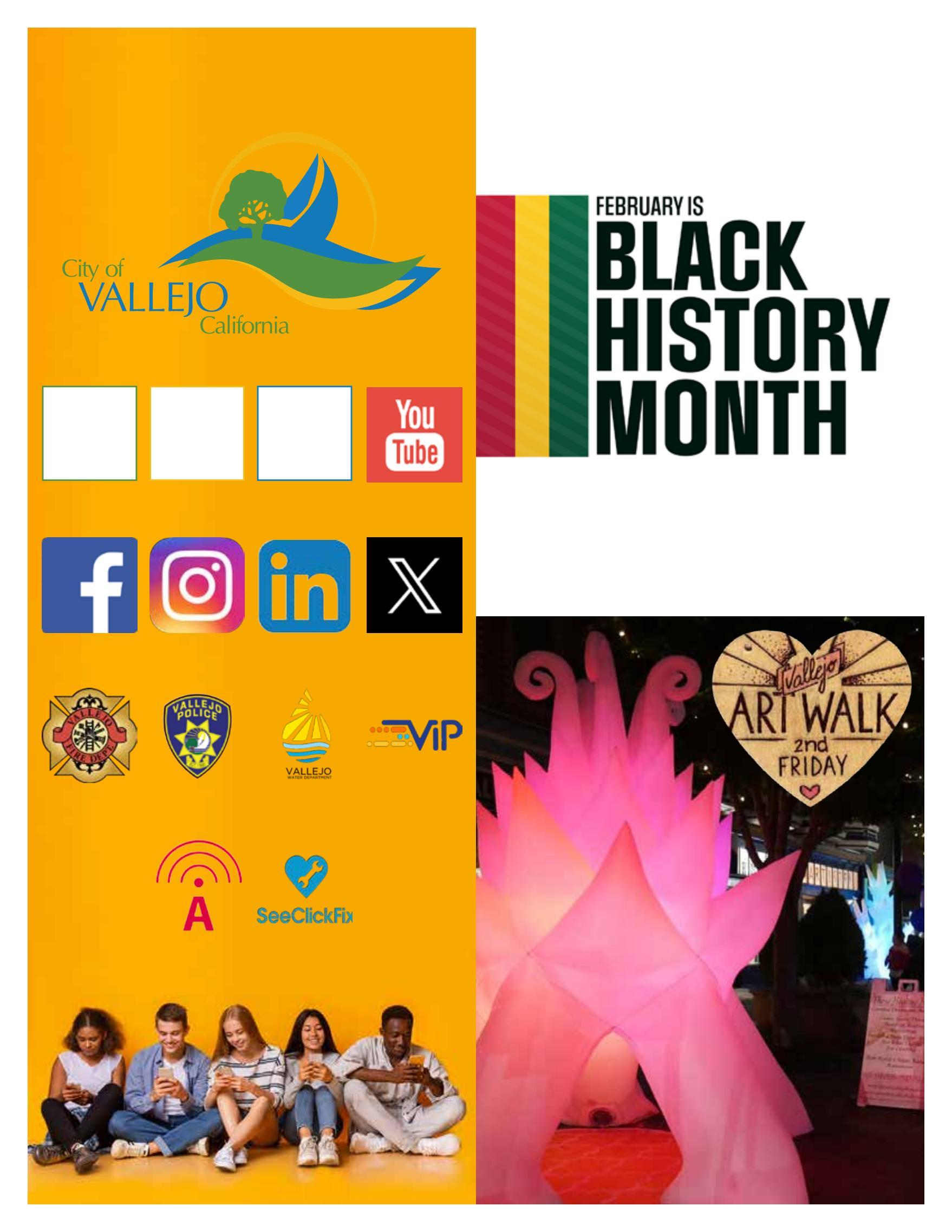 Ngayongbuwan,ipinagdiriwangnatinangBuwanngKasaysayanngmga Itim,bilangpagpupugaysamaramingkontribusyonngmgaAprikanongAmerikano saAmerikaatsaVallejo.Nagsagawaakongakingbuwanangpagpupulong kasamaangmgamiyembrongVallejoNAACPnoongunangbahaging linggongito,kungsaantinalakaynaminangmgapangunahingproyektong LungsodatmgaparaanupangmapabutiangmgaserbisyongLungsod.