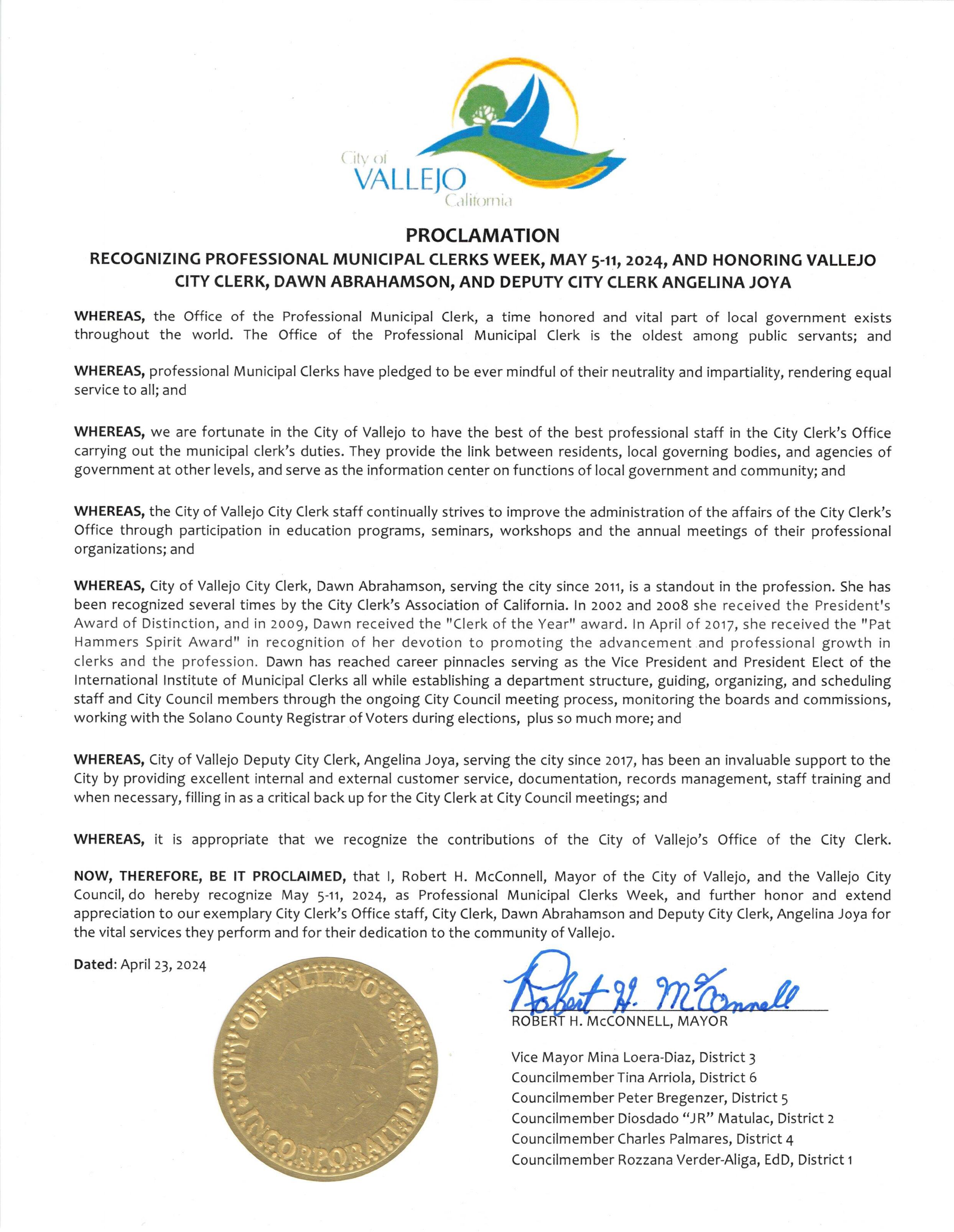 In the realm of municipal governance, City Clerks are often the unsung heroes, quietly ensuring the smooth functioning of administrative processes. On Tuesday, April 23, the Vallejo City Council took a moment to honor City Clerk Dawn Abrahamson and Deputy City Clerk Angelina Joya for their dedication to serving the community.