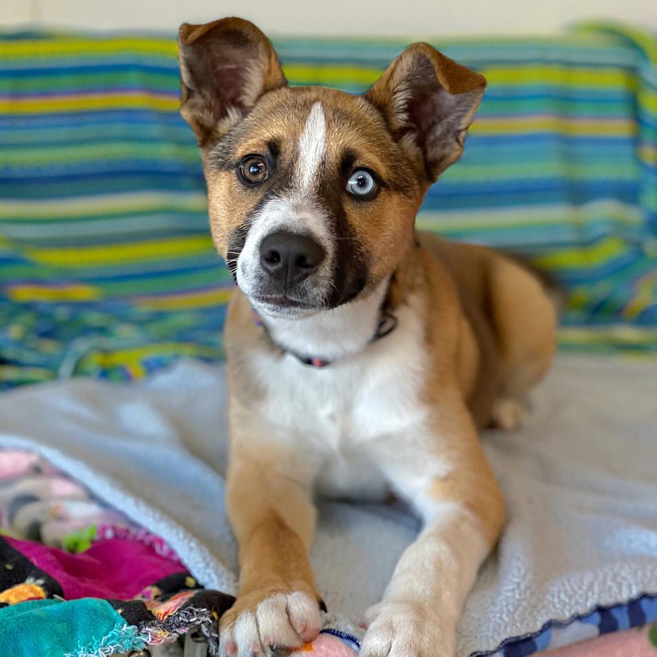 Kovu is a spunky 8-month-old pup who loves everyone he meets! He enjoys playing with toys, snuggling, chasing balls, and going for walks. His leash manners are improving, and he is working on the "sit" command. Kovu is treat-motivated and eager to please. He is looking for a forever family that will continue to work with him on basic skills. He thrives in the company of other dogs and would do well in a home with a canine companion. His energetic personality would make him an ideal jogging or hiking partner! If you think Kovu might be your next best friend, go to HSNB.org and fill out our dog adoption interest application.