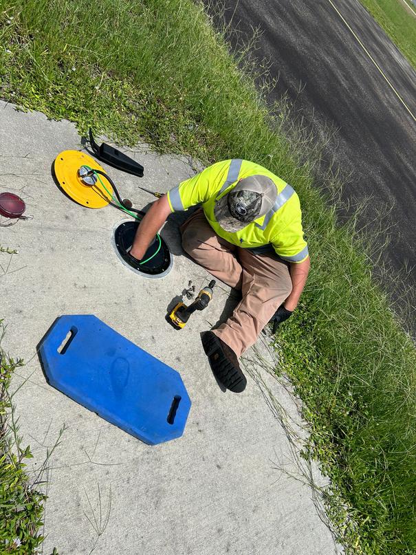 It's a dirty job ... and we're sure glad we have our City pros on hand to do it! Brian Bettenhausen, Danny Self and Wayne Ball with Utilities remove and replace a pump at Lift Station 5 near Higel Marine Park July 22.