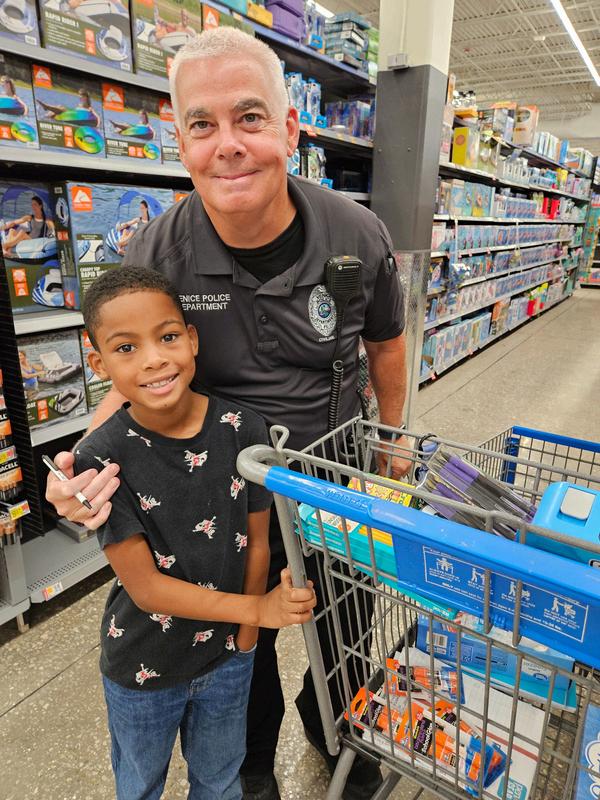 It’s almost time to go back to class, and that means it’s time for Shop with a Cop! For more than 26 years, this annual event has connected Venice police officers, CROs and other staff and community members before the start of the new school year. On July 25, officers supported 18 students with school supplies, new clothes and shoes, gifts for parents and siblings, breakfast and pizza lunch at VPD, and ice cream downtown. What a day!