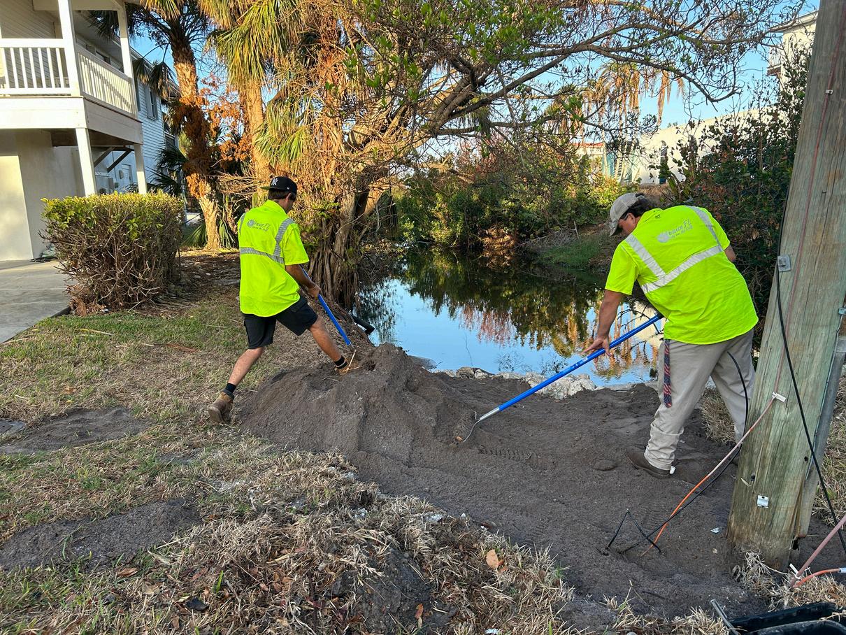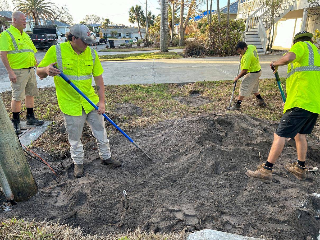 The City’s Stormwater crew repairs a major erosion issue on Gardenia Drive caused by the ebb surge following Hurricanes Helene and Milton. Pictured are Will Tyerman, Steve Timmer, Kendri Bruzon and Deegan Harwood