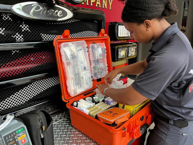Bithja LaFaille organizes medical supplies Nov. 4 at Fire Station 1