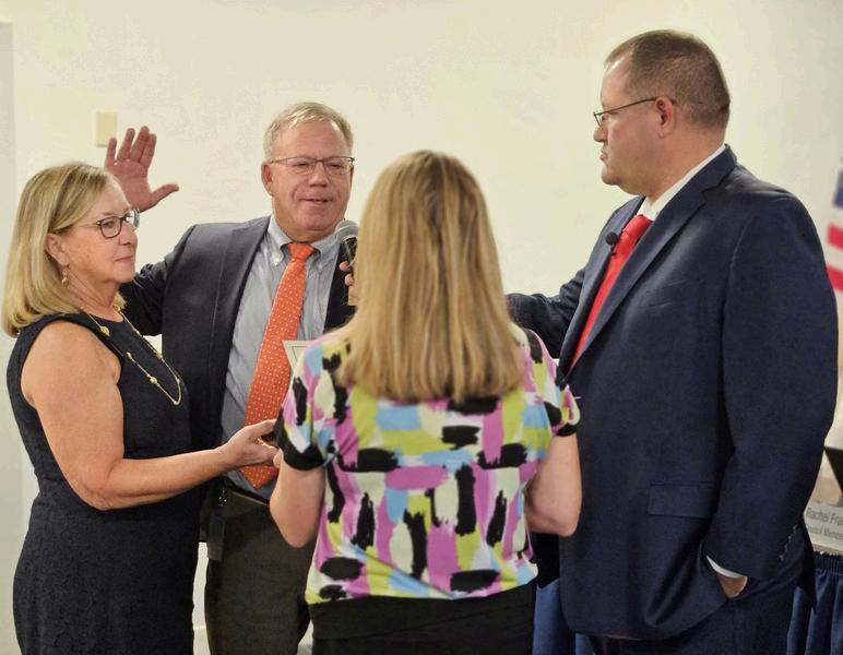 As their wives Donna and Janet looked on, returning City Council Member Jim Boldt and new Council Member Kevin Engelke were sworn in Nov. 19 by Deputy City Clerk Mercedes Barcia.