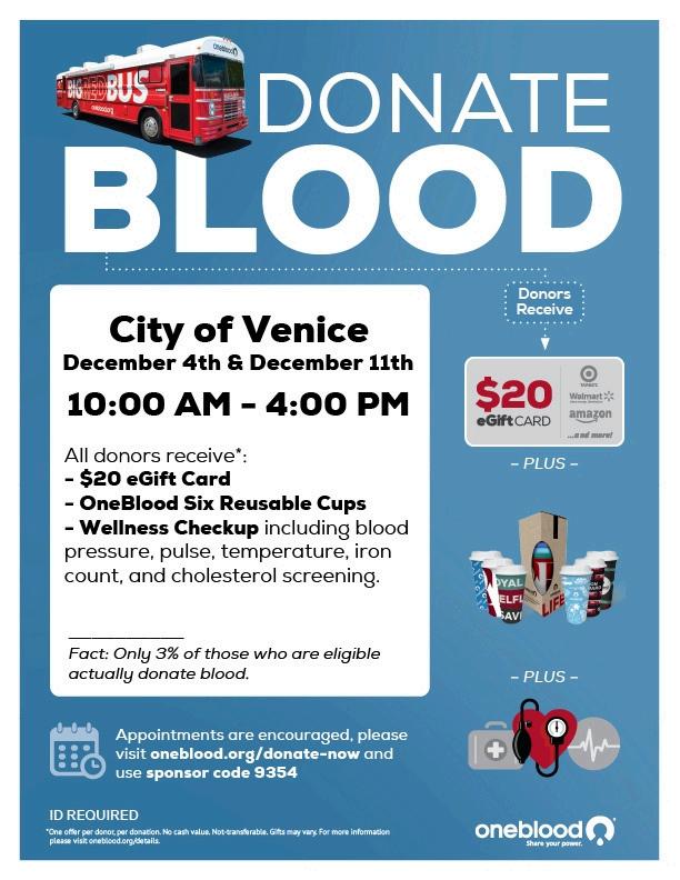 In lieu of a toy, financial donations may be made at the Venice Police Department payable to “City of Venice” in care of Blue Santa. Thank you in advance to our generous community!