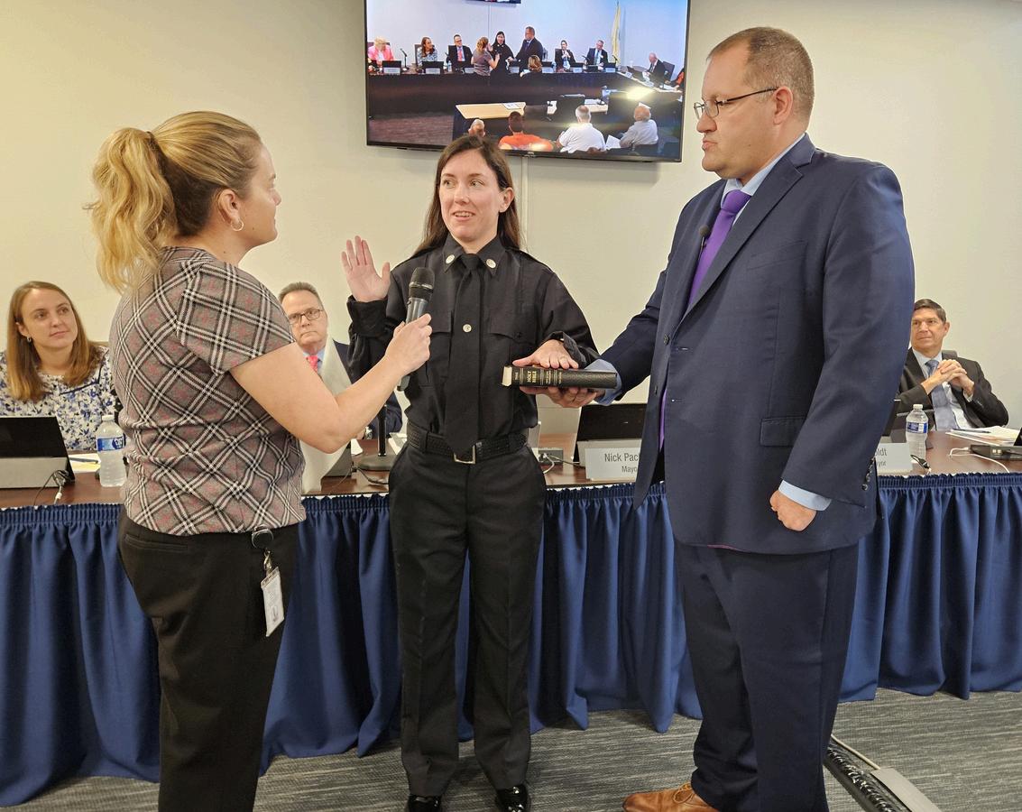 Mackenzie Dunlap, Ryan Perez and Christopher Thall were sworn in by Deputy City Clerk Mercedes Barcia, as Mayor Nick Pachota assisted.