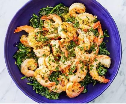 Serve the shrimp over the spinach, sprinkled with lemon zest and parsley.