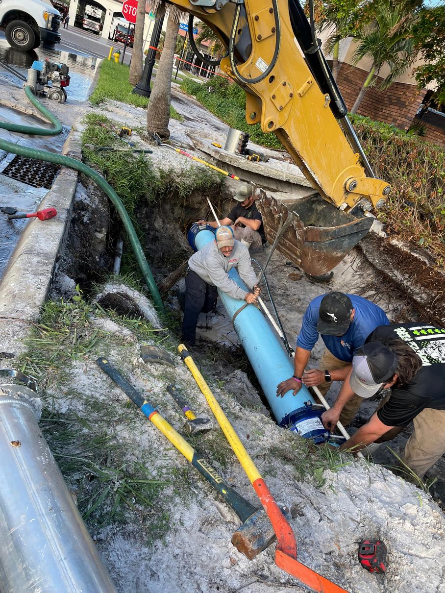 Who: Derek Self. Department: Utilities. Date: Dec. 18. Reason: Derek volunteered to spend the night at the WRF during Hurricane Milton. He arrived Wednesday morning, Oct. 10, and worked on final preparations for the storm all day, including the isolation of the hospital water main and shutting down the island. He even went to the hospital to check their master meter when they called complaining of low pressure. After a very windy night, to say the least, he worked all day bringing the utility system back up, repairing and cleaning out the collection system where needed. As the rest of the team went home, Derek stayed on as on-call water staff, fixing and isolating water services and even one 4-inch AC main break. Late that evening, the WTP operation called him with a list of 10 breaks that were called in as cell service returned. It wasn’t until the police called Patience Anastasio about a water main break at 8:30 p.m., and Patience called Derek, that everyone realized he had been working so long, being absolutely polite and willing to help the whole time. In the ensuing weekend, Derek’s helpful attitude and hard work continued as he ran calls and, in particular, helped FPL staging area at the airport. He built a water connection for their shower trailers and showed them where and how to dump their waste. Derek is such a pleasure to work with. He worked tirelessly before, during, and after Milton and was always respectful and polite and had a positive attitude. Derek is pictured at top right with Patience Anastasio as Tim Merritt looks on.