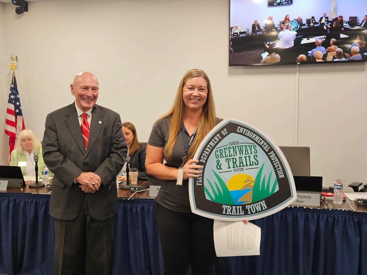 The City of Venice was recognized as a Trail Town during the 2025 Florida Greenways & Trails Summit Feb 5-6 at the Venice Community Center At the Jan 28 Council meeting, City Bicycle Pedestrian Coordinator Darlene Culpepper, with City Manager Lavallee, displayed the signage the City received for the designation.