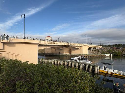 The vehicle veered to the right, going over the curb and sidewalk, where it struck a light pole and continued heading off the road The vehicle went down the embankment, on the west side of the Circus Bridge, and entered the Intracoastal Waterway.