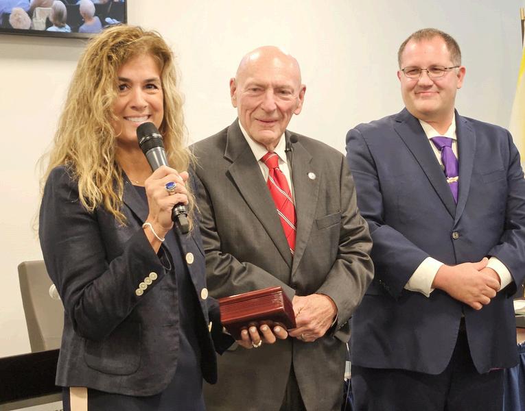 The Employee of the Year honor is “more than a contest, it’s a tribute to someone who others feel represents who they’d like to be, their ideals,” Ed said, adding about 16 staff members, more than ever before, were nominated. “The program only works because someone takes the time to look at someone else and identify that person as an ideal public servant.” Calling her “a great choice,” Ed then presented Cordy with a wood clock. “Congratulations to you and all that you do.”