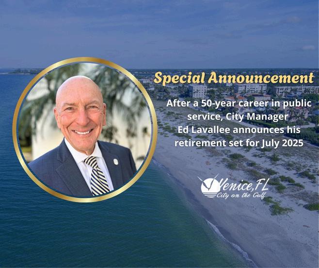 In a message to City staff on Jan. 17, Lavallee said, "It is with mixed feelings that I announce my plan to retire from the City of Venice this July 2025. At that time, I will have completed more than 13 years as Venice City Manager and more than 50 years in public service.