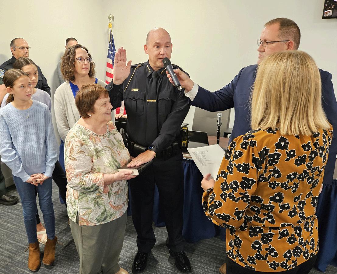 With his wife, daughters, and mother by his side, new Venice Police Chief Andy Leisenring was formally sworn in during the Jan. 14 City Council meeting by City Clerk Kelly Michaels.